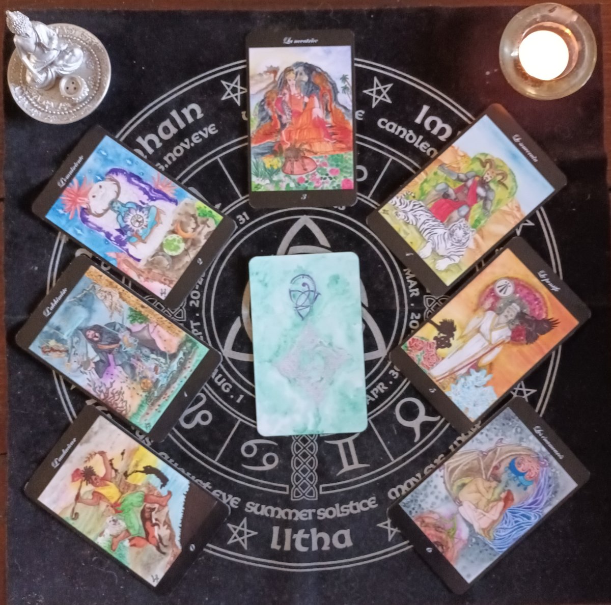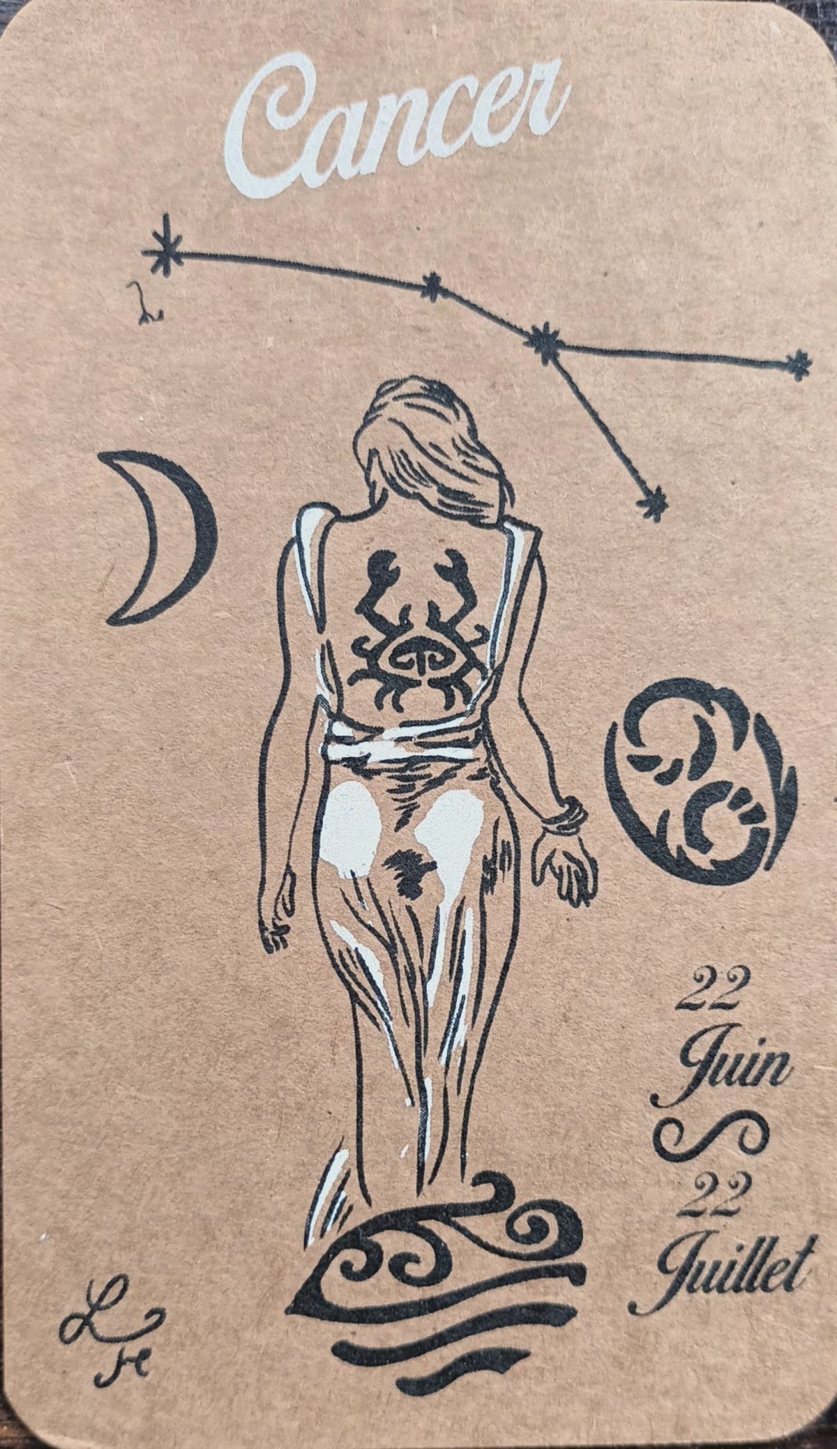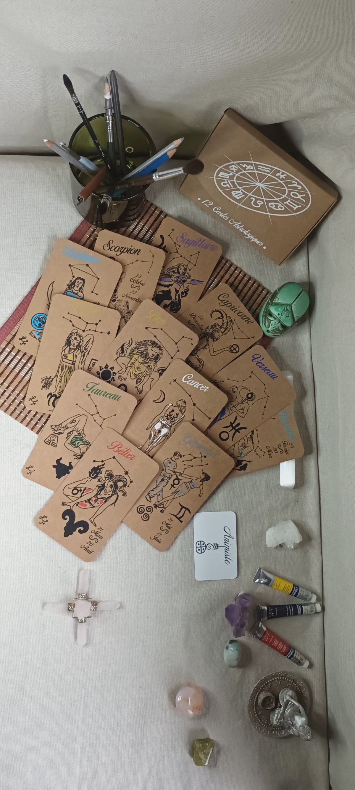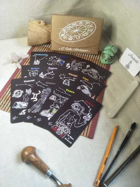 Le Tarot Etherestre est composé des 22 Lames Majeures, sur la base du Raider Waite Tarot. Les illustrations sont à l'aquarelle, le livret explicatif est manuscrit.